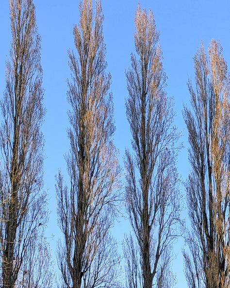 How lovely to see new growth coming back. Even the bare trees looked beautiful against the blue sky.
